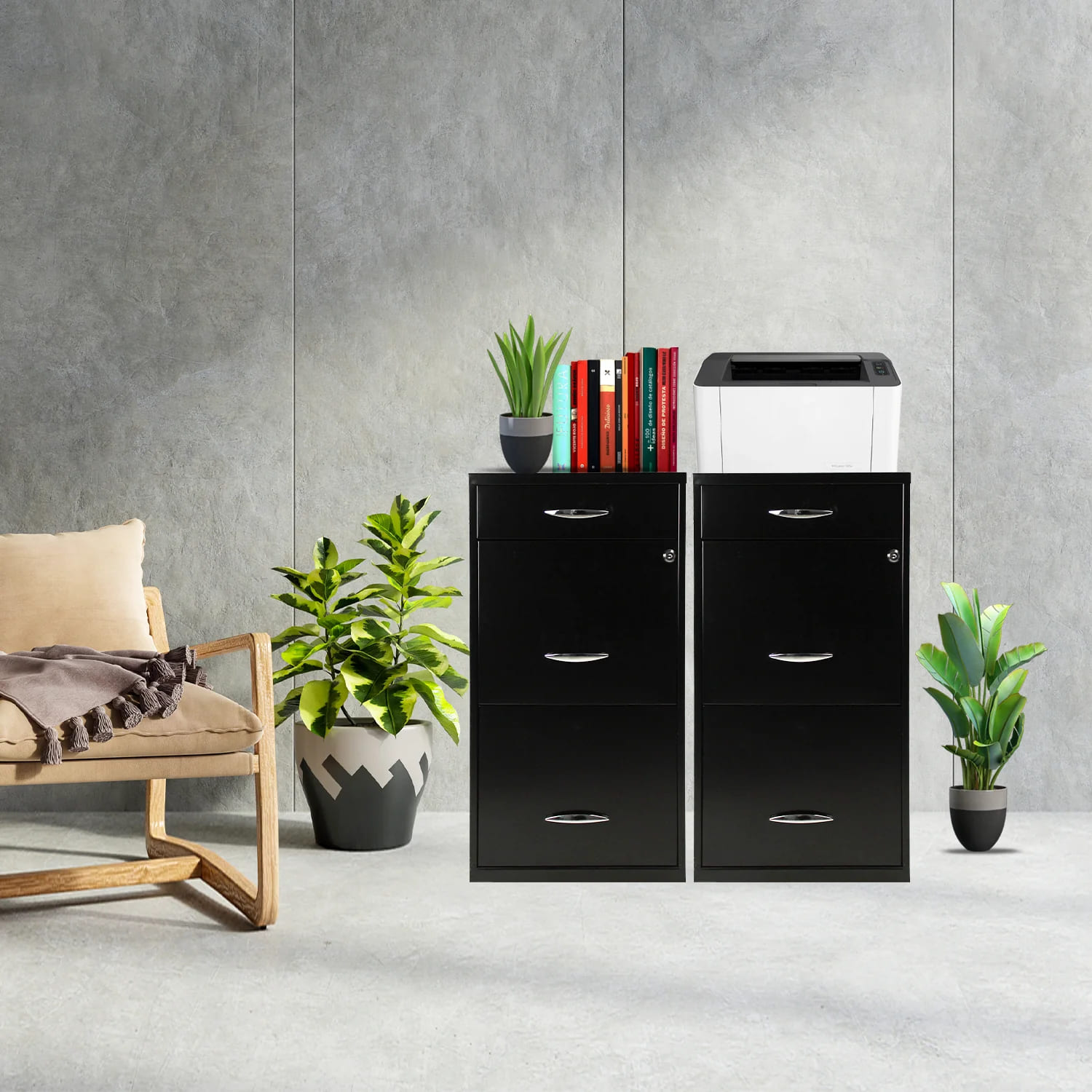 SEGURIDAD AVANZADA EN ALMACENAMIENTO: Con cerradura en la gaveta media y juego de llaves para proteger documentos valiosos, combinando accesibilidad y seguridad, este archivero sirve como un organizador de documentos.