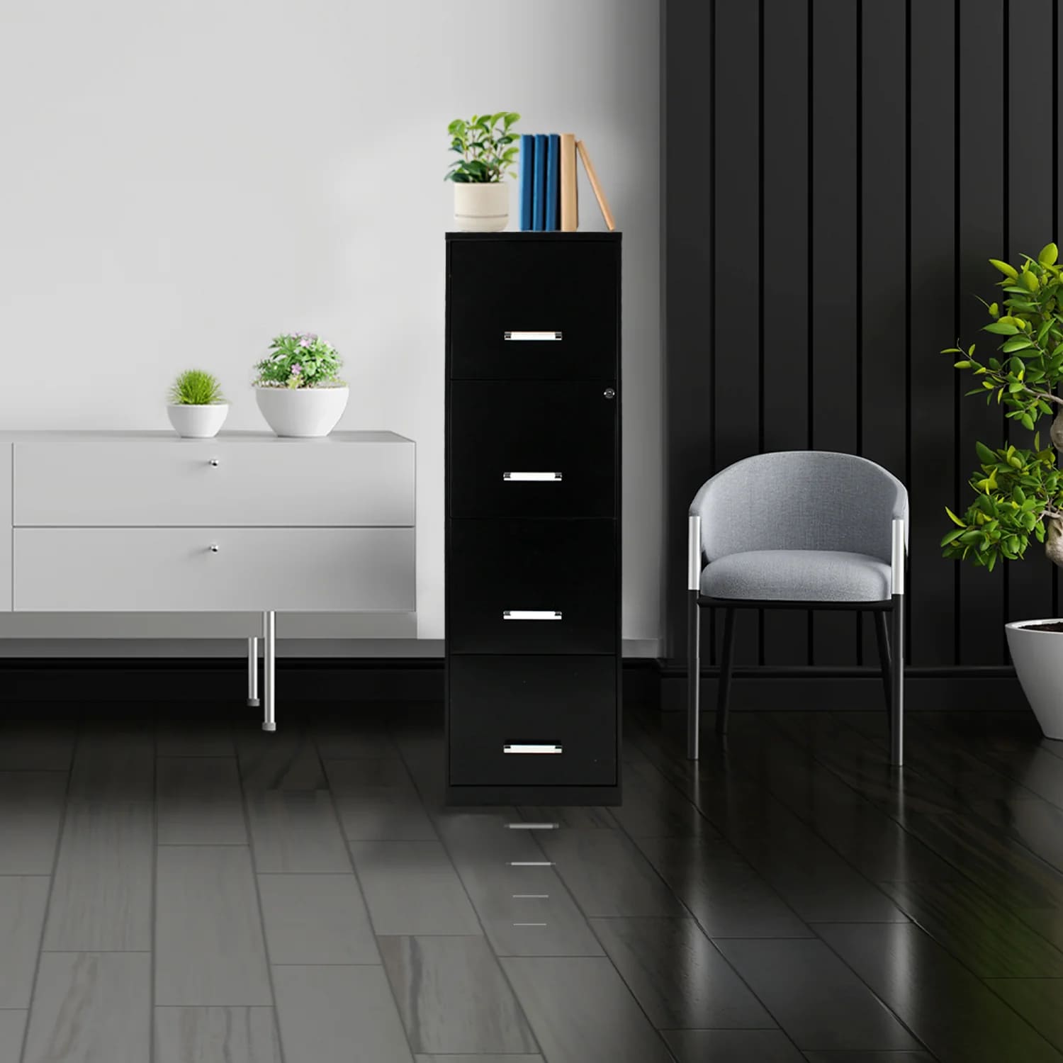 ALMACENAMIENTO SEGURO Y EFICIENTE: Este archivero metálico con cuatro gavetas tamaño carta, ideales para organizador de documentos, la gaveta superior incluye cerradura y 2 llaves, garantizando la seguridad de tus archivos importantes.
