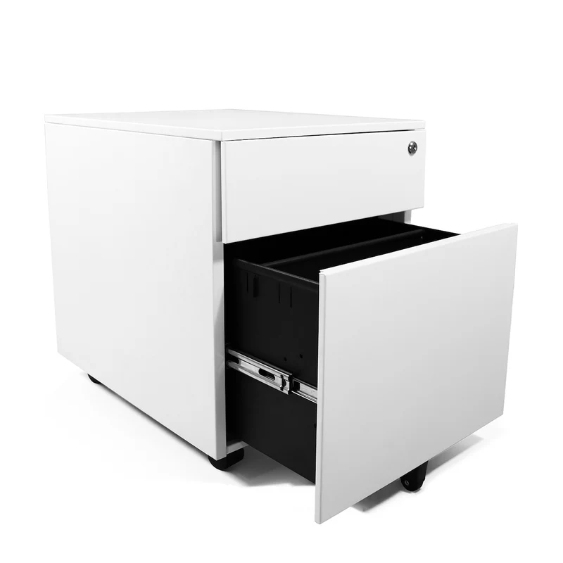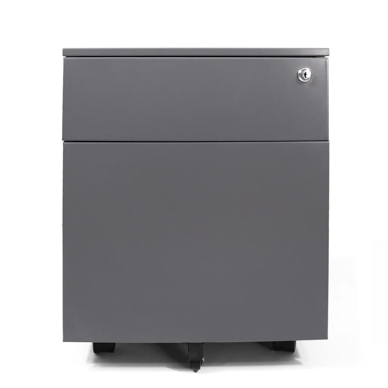 Archivero metálico móvil con 2 gavetas tamaño carta. Fabricado en lamina calibre 24, correderas sencillas. 1 cajón de archivo y 1 papelero tamaño carta con cerradura.