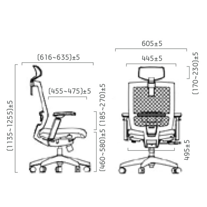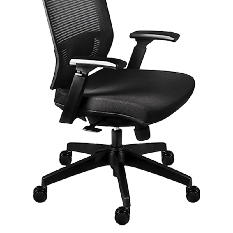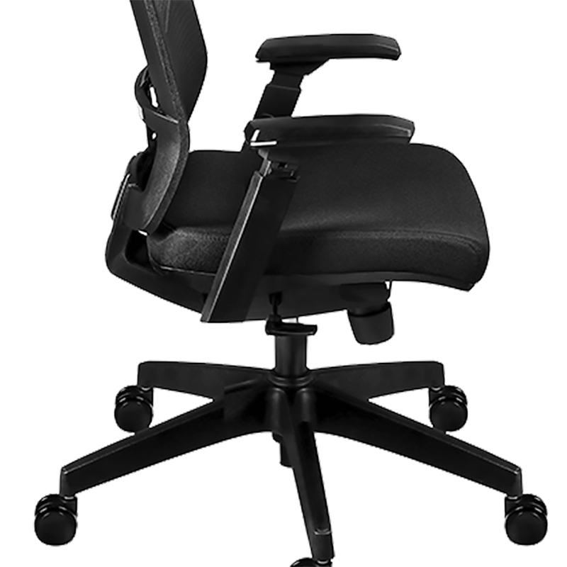 RESPALDO Tapizado en malla con almohadilla lumbar ajustable de altura.