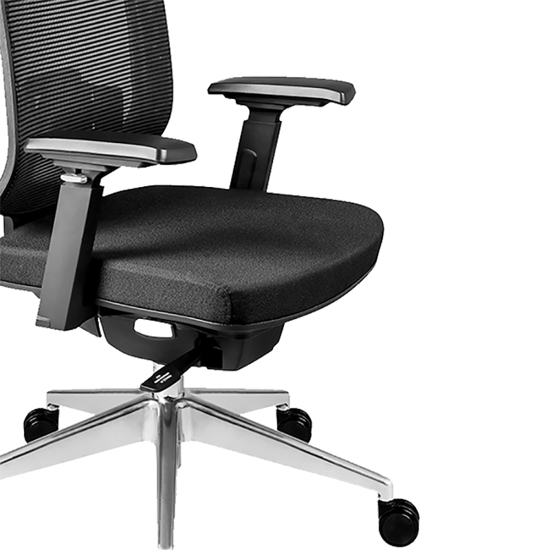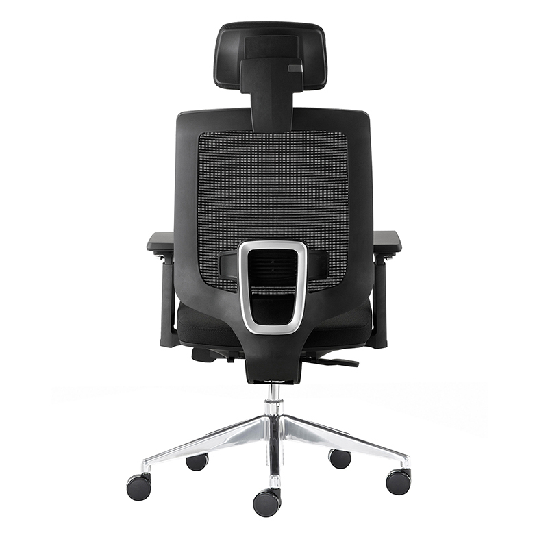 RESPALDO Tapizado en malla con almohadilla lumbar ajustable.